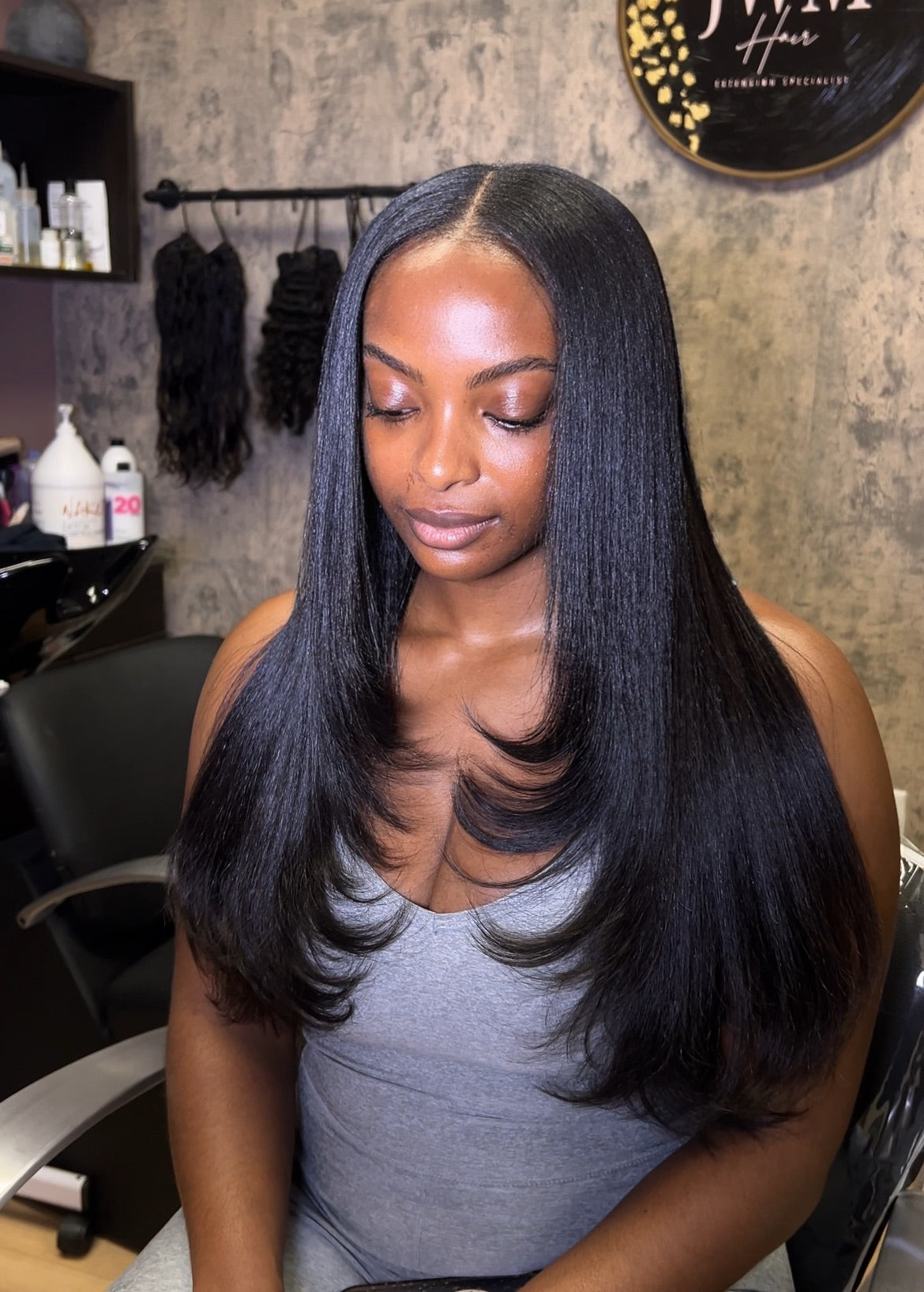 Our Raw Kinky Straight hair is best matched with 4b-4c natural hair textures. It can give a voluminous blown out look or sleek and polished press and curls. Color may vary from brown-dark brown.
